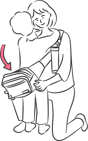 - お子さまを抱いたり下ろしたりする時は、腰を曲げるのではなく、膝を曲げて低い姿勢になった状態から行ってください。