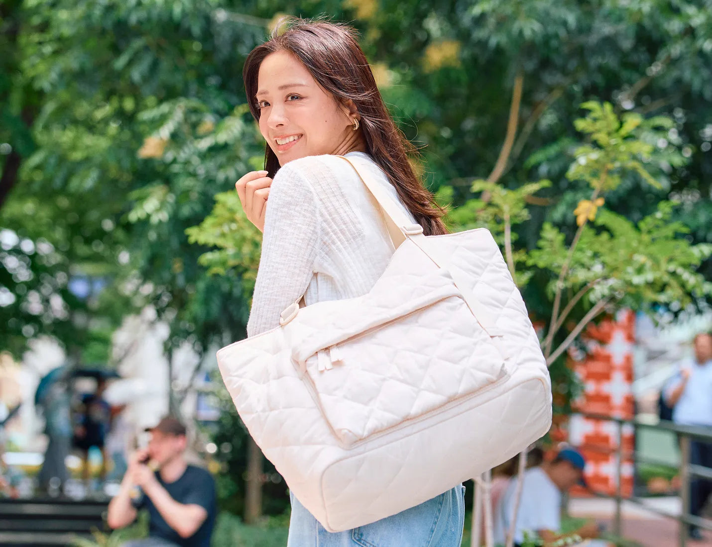 ライフステージが変わっても自然に使い続けられるデザイン。育児シーンだけでは終わらない、長く寄り添って使い続けることができるのが、POMULUマルチトートバッグです。