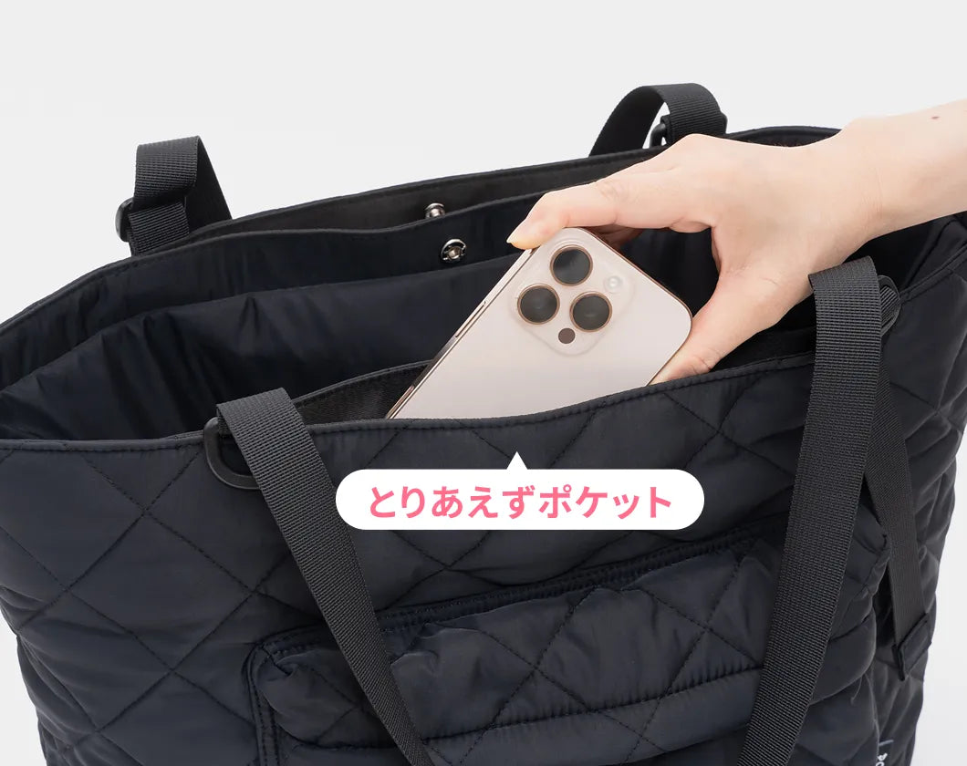 自立するから、ちょっと置きたいときも安心。中身がくずれにくく、必要なものがすぐ取り出せます。お家の中でも、外出先でも、使いやすさを感じられるトートです。