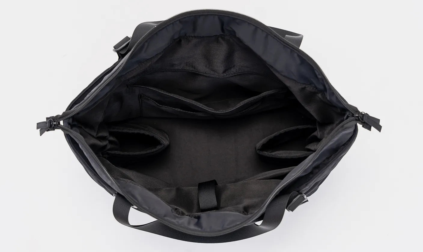 特許出願済みの「サイズ拡張」機能で、荷物の量やお出かけシーンに合わせて調整が可能。1つで2通りの使い方ができる、マルチなトートバッグです。