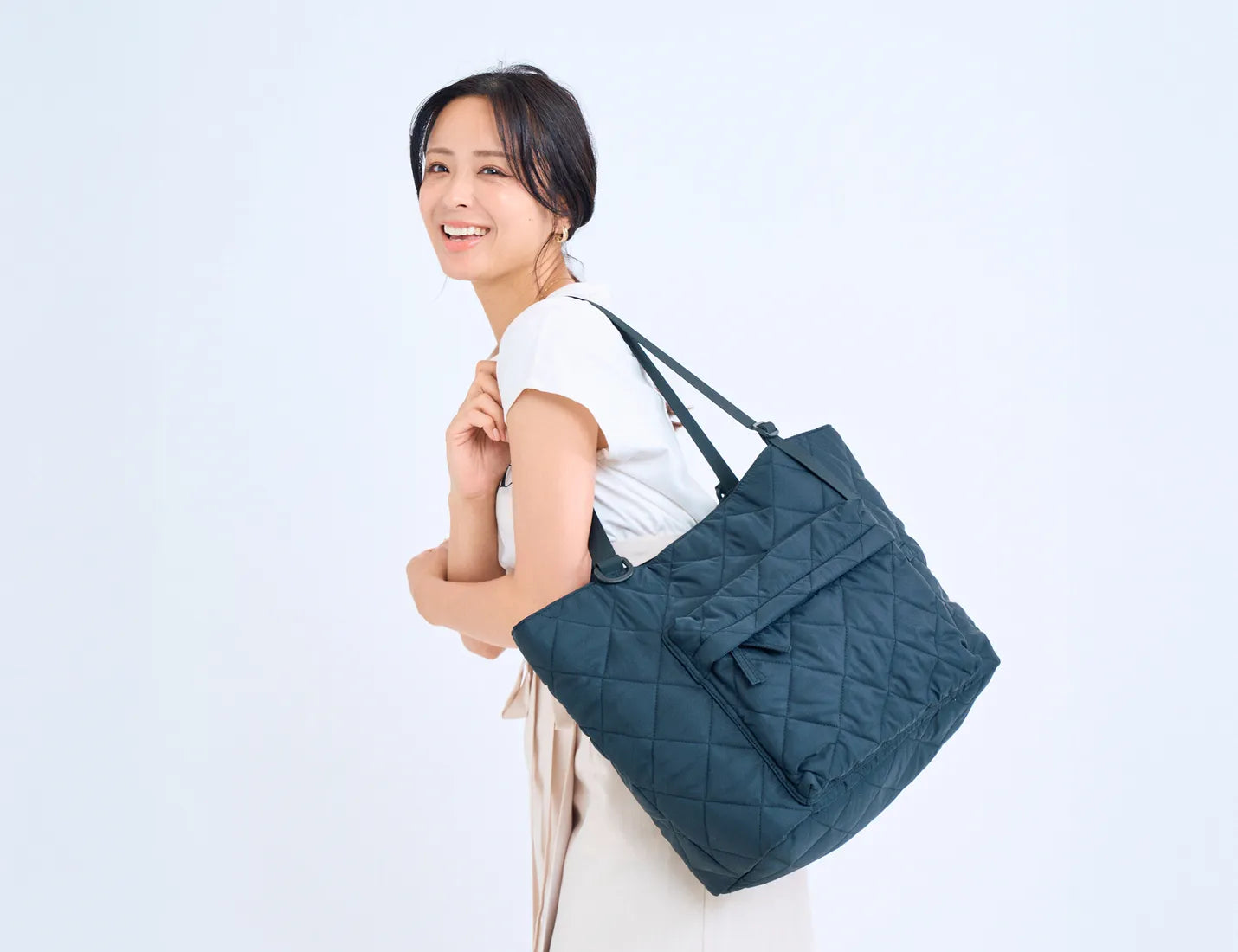 毎日持っても飽きないシンプルカラー。上品に映える柔らかなキルティング素材で、服装やシーンを選ばず使えるから、どんなコーデにも自然になじみます。